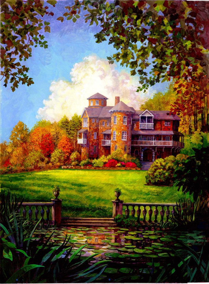 < > A painting I recently finished for a book cover. I made the house up, but boy, would I love to be living in it.
