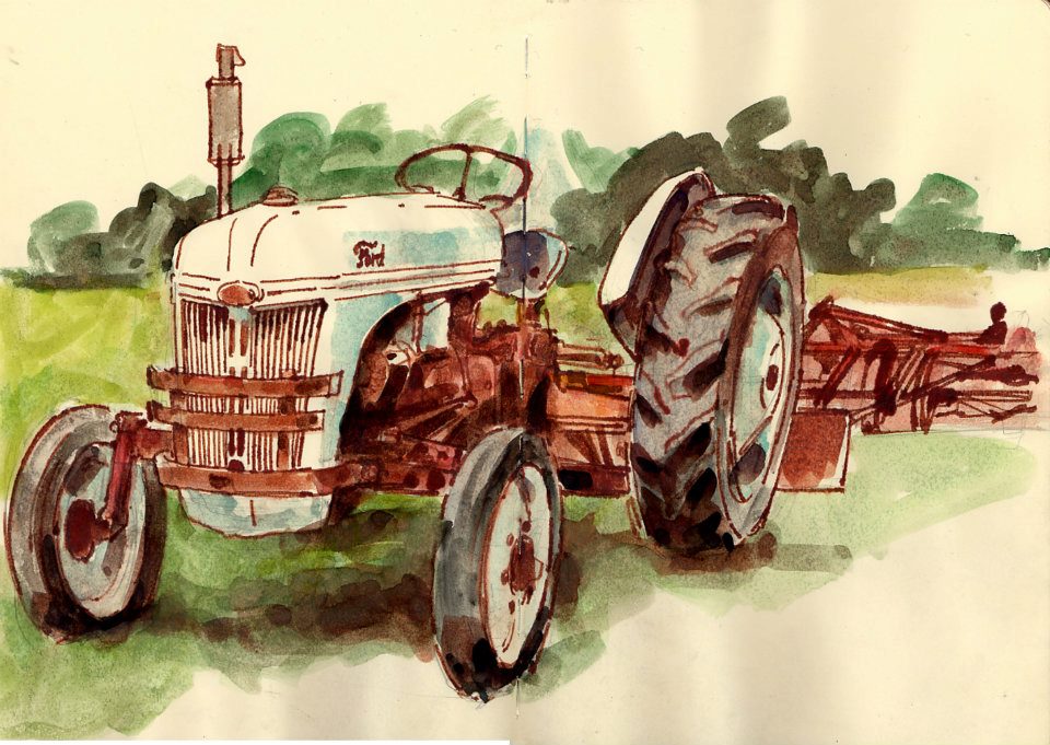 < > This old Ford tractor sits out in a field near our weekend retreat upstate. The area is very beautiful, but it's this old Ford that keeps me reaching for my sketchbook.Highland Lake, NY