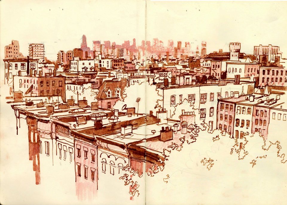 < > Included in The Art of Urban Sketching: Drawing On Location Around The World I drew this one from my rooftop, and It was later published in the Urban Sketchers book.Crown Heights, Brooklyn, NY