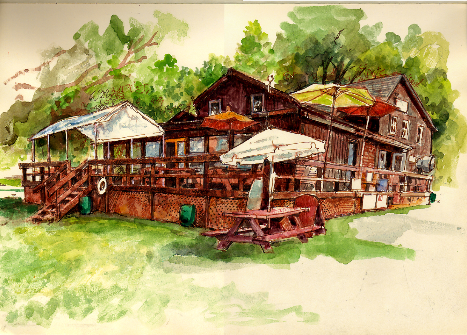 This place is in upstate New York, it's a five minute walk fro our weekend retreat, it sits right on a lake so we can canoe right up to it.